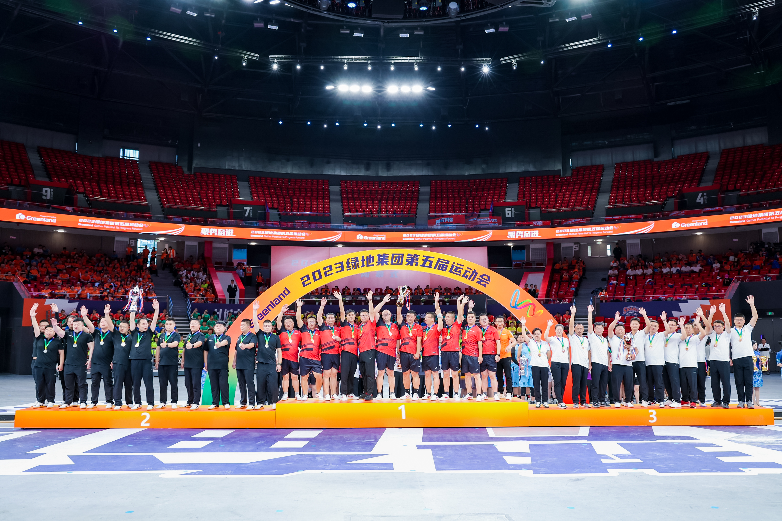 10月23日,以“聚勢奮進”為主題的綠地集團第五屆運動會在上海體育館勝利閉幕。綠地集團董事長、總裁張玉良出席閉幕式并為獲獎團隊和運動員頒發獎杯。