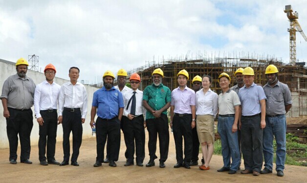 集團海外公司副總經理、項目負責人袁剛向納圖曼總理匯報了項目建設情況,表示該工程自去年10月開工以來,進展順利,今年10月即將完成主體工程,預計明年8月前完成內部裝修,工程可按期竣工。項目組還介紹了有關質量控制、安全管理、招募和培訓當地工人等情況。納圖曼對項目進展表示滿意,對中瓦兩國施工人員的辛勤工作表示感謝。得知中方雇用近百名當地工人并提供培訓、兩國工人建立了深厚友誼時,納圖曼十分高興,指示瓦基礎設施部安排更多當地技術人員前來實地培訓。聽取完項目情況匯報后,納圖曼參觀了材料實驗室、混凝土攪拌站等,并高興地與工程技術人員合影留念。